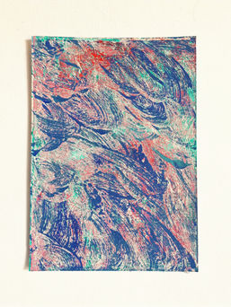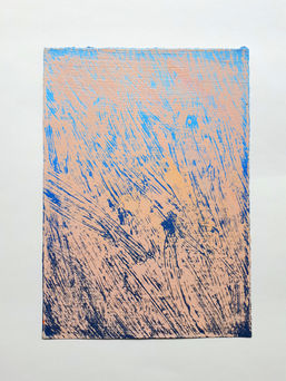 Joyfully contrasting with the title "small miseries" is a numerous series of hand printed papers about how to keep on working without money, almost no materials and no exhibition plans but a vivid desire to explore color for itself and showing an outrageous fuck off finger to destiny.